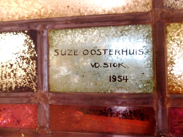 Witraże, jak świadczy napis umieszczony na jednym z elementów, zostały wykonane w pracowni holenderskiej artystki Johanna Suzanna (Suze) Oosterhuis-van der Stok w 1954 roku.